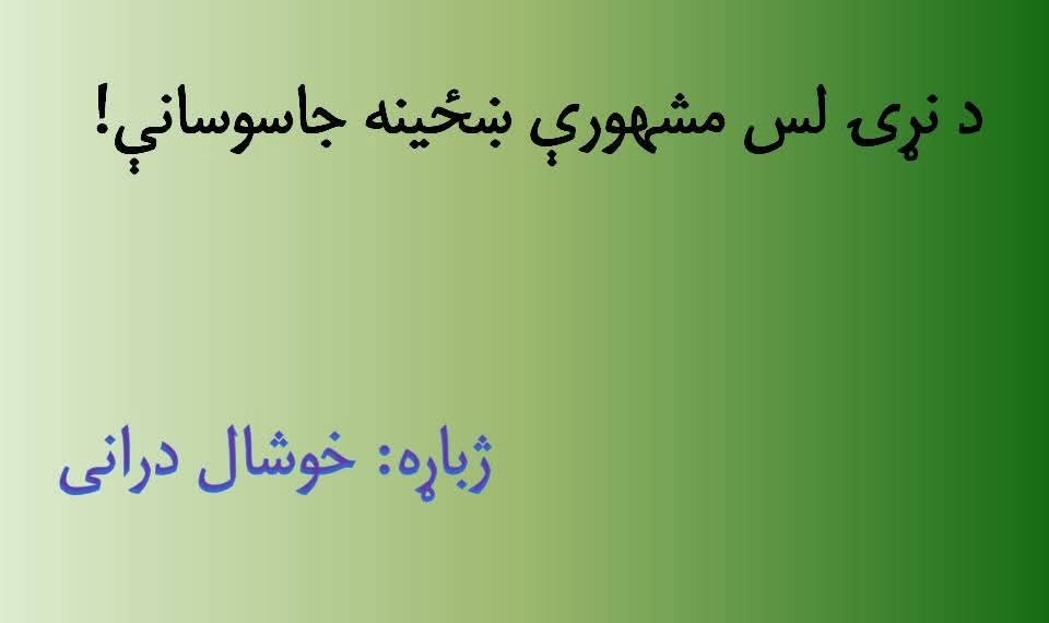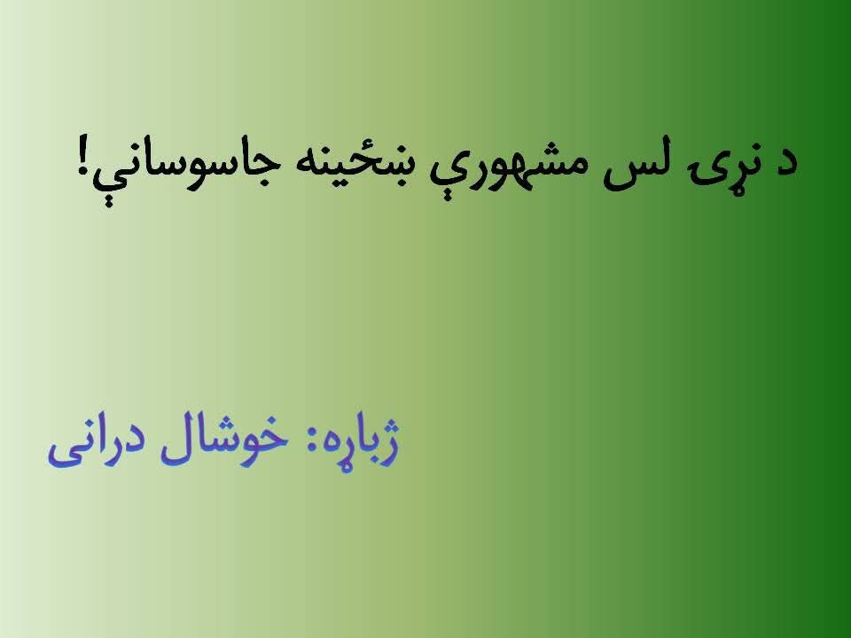 د جاسوسۍ تاریخ راته معلوم نهدی، چې کله پیل شوې او لومړۍ دغه کار کوم دولت کړی؟ خو د تاریخ په اوږدو کې هر دولت د هېواد دننه او بهر خپل جاسوسان ساتلي او د خپلو گټو د خوندي کولو لپاره یې له دوی څخه کار اخیستی. د جاسوسۍ لپاره سړي او ښځې دواړه کارېدلي. د وخت په تېرېدو په جاسوسۍ کې هم بدلون راغلی او اوس د نړۍ پرمختللي هېوادونه له عصري ټېکنالوجۍ څخه په گټه اخیستنې د جاسوسۍ کارونه پرمخ وړي. د تاریخ په اوږدو کې ځوانې ښځې د زبر ځواک دولتونو لهخوا د جاسوسۍ لپاره د یوې وسیلې په توگه کارېدلې او ددغه کار لپاره یې د هېواد ښایسته او ښکلې نجونې کارولي دي.