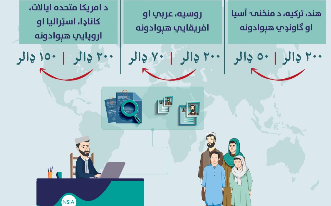 د احصایې او معلوماتو ملي ادارې ويلي، چې د ریاستالوزرا د حکم له مخې د بهر مېشتو افغانانو لپاره د پېژندپاڼو په بیو کې کموالی راغلی دی.