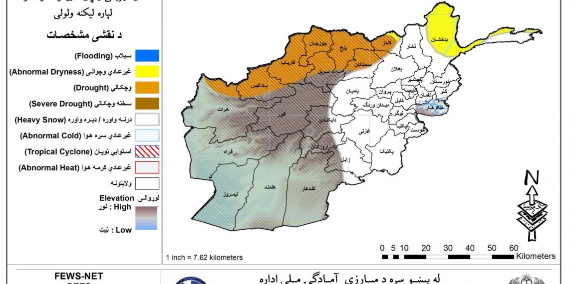 د پېښو پر وړاندې د مبارزې ملي اداره وايي، په راتلونکې اوونۍ کې به په ځینو شمالي او مرکزي ولایتونو کې د وچکالۍ او کمښت ستونزې دوام ولري. په ځانګړې توګه بدخشان کې وضعیت نسبي عادي دی، خو کندز، سمنګان، بلخ، فاریاب، جوزجان، سرپل او بادغیس د اوبو کمښت سره مخ دي.