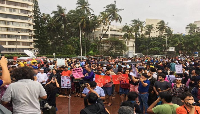 لاريون کوونکو د نريندرا مودي د توکمپال حکومت پر ضد شعارونه ورکول او ويل يې چې حکومت د مسلمانانو پرضد د راولاړ شوي تاوتريخوالي په اړه چوپه خوله دی.