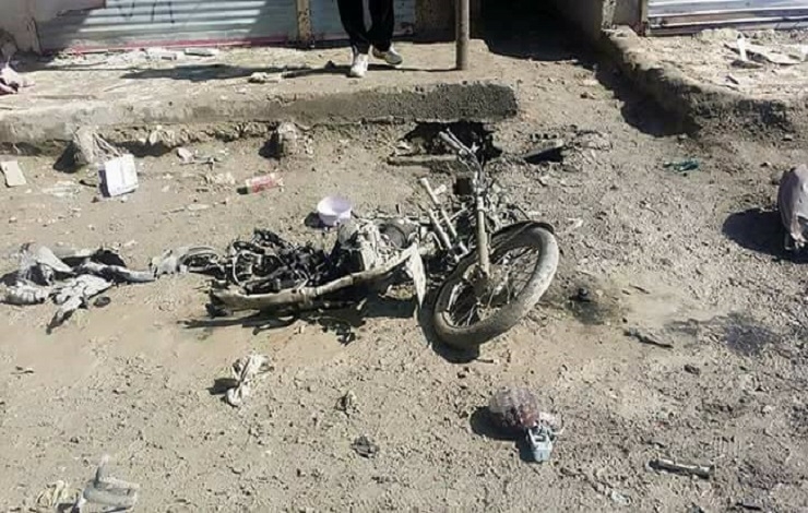 د دغې ولسوالۍ امنيه قومندان محمد رضا پاچا رسنيو ته ويلي، نن له غرمې مخکې د ولسوالۍ په بازار کې په موټرسايکل پسې تړليو چاودېدونکو توکو چاودنه کړې چې له کبله يې ياد مرګ ژوبله رامنځته کړې ده.