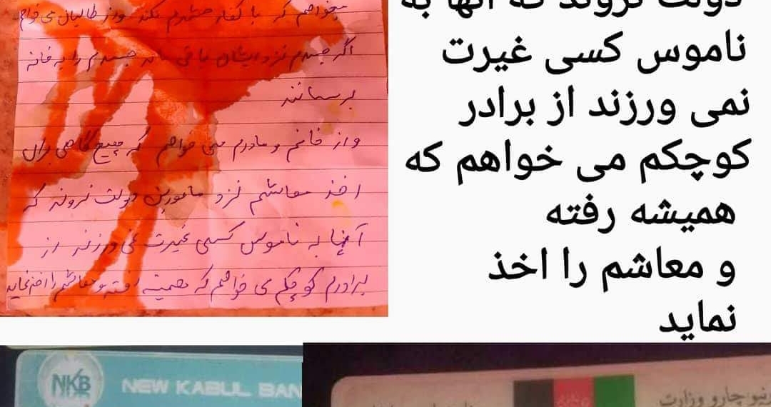 واز خانم و مادرم می خواهم که هیچ گاهی برای اخذ معاشم نزد مامورین دولت نروند که آنها به ناموس کسی غیرت نمی ورزند از برادر کوچکم می خواهم که همیشه رفته و معاشم را اخذ نماید .