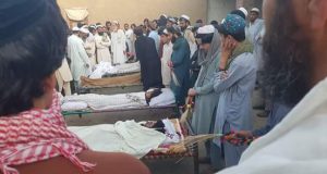 ځایي خلکو د وژل شويو کسانو جنازې د اعتراض په ډول د باک ولسوالۍ مرکز ته وړې او له اړوندو ارګانونو د عدالت غوښتنه کوي.