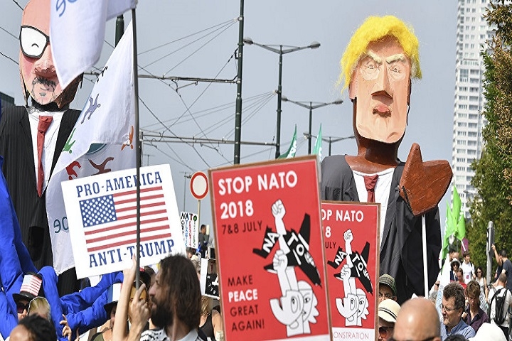 (کابل ټکی کام، ۱۳۹۷، چنګاښ ۱۷) تېره ورځ په بروکسل کې د ناټو غړو هېوادونو د مشرانو غونډې له ناستې مخکې سلګونه کسانو د ټرمپ د جګړييزې پاليسۍ پرضد مظاهره وکړه او غوښتنه يې کوله چې مونږ جګړه نه خوښوو سوله غواړو.