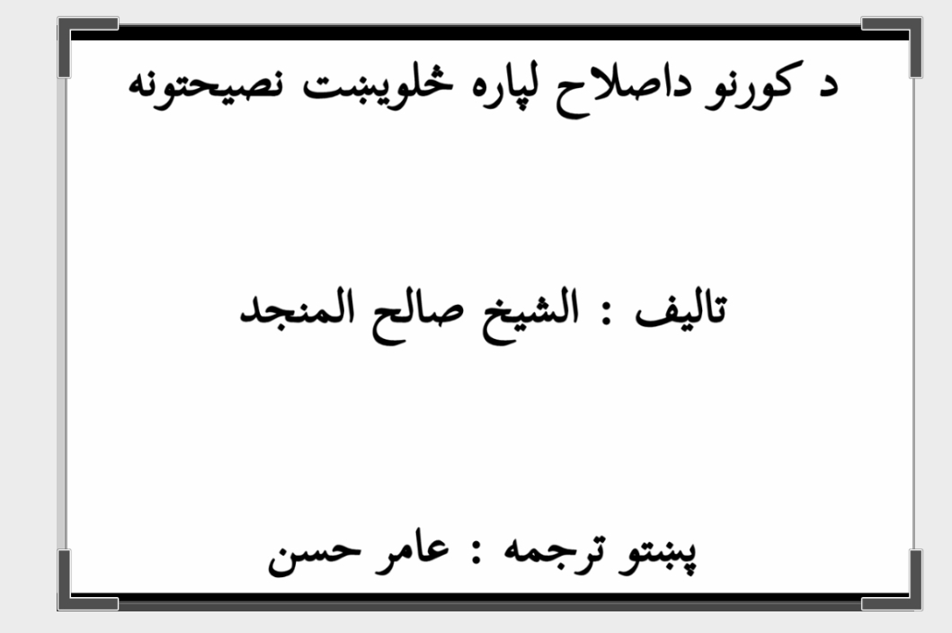 نو ای لوستونکیه ته ددي سوال جواب ته غوږ شه زه ددي جواب په یو څو نصیحتونو کي کوم دالله نه امید دی چي پدي سره ټول امت ته نفع ورسوي او ددي امت دبچیانو افکار د یو نوي کور د جوړولو طرفته متوجه کړي