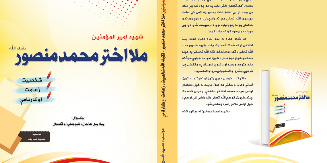 د ملا اختر محمد منصور رحمه الله په نوم کتاب پر ښه سپین کاغذ، ښلکي صحافت په ۳۳۰ مخونو کې په مجلد شکل چاپ شو.
