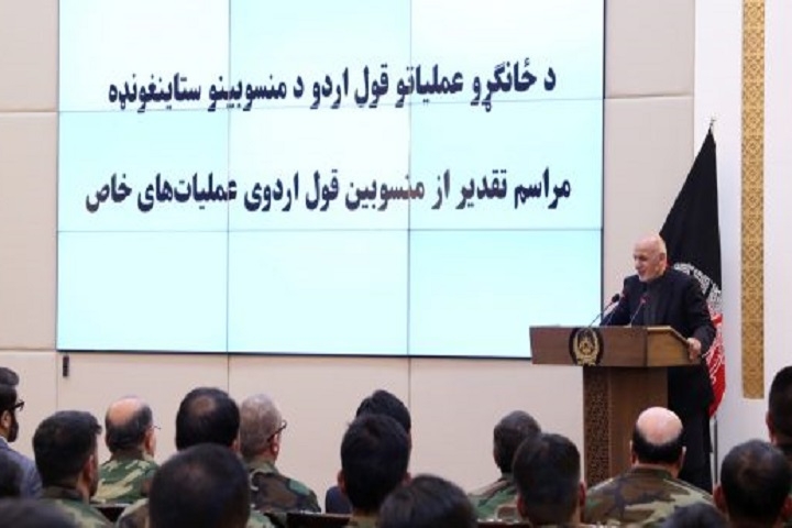 اشرف غني دغه خبرې پرون ماښام د ځانګړو عملياتو قول اردو منسوبينو د تقدير په موخه په جوړه شوې غونډه کې وکړې.