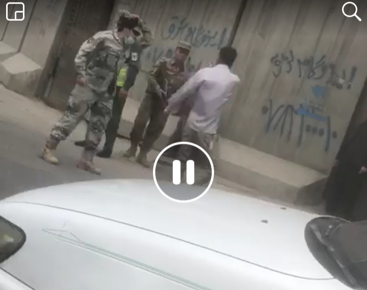 په هغه ویډیو کې لیدل کیدل چې په کابل کې د پاکستان د سفارت مخته د پولیسو یو قومندان سپین ږیرې او مریضان وهي.