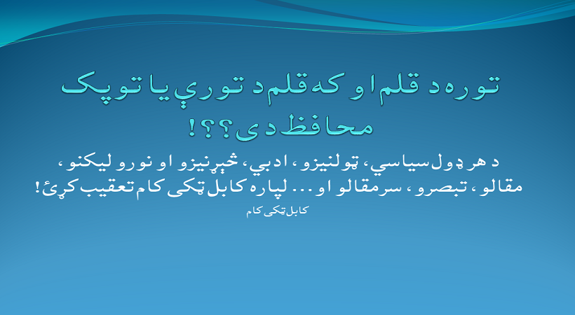 که چېرته له هغو خلکو سره ومنو چې اوسنۍ زمانه د قلم زمانه ده اوتوره بايد په تېکي کې کېښودل شي. نو له دوی نه به يو څو پوښتنې وکړو: