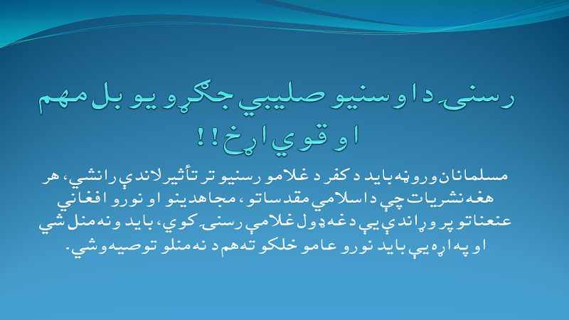 دغه ډول رسنۍ له ډېره وخته کېږي چې په اسلامي ټولنو کې د کفر لپاره خدمت تر سره کوي او بيا په ډېره سپين سترګۍ سره ادعا کوي چې ګواکې دوی ازاد خلک دي او په اسلامي نړۍ کې د مسلمانانو رسنيزه ازادي تأمينوي. خو په حقيقت کې همدوی د مسلمانانو تر منځ د نفاق او بې اتفاقيو اچوونکي دي.