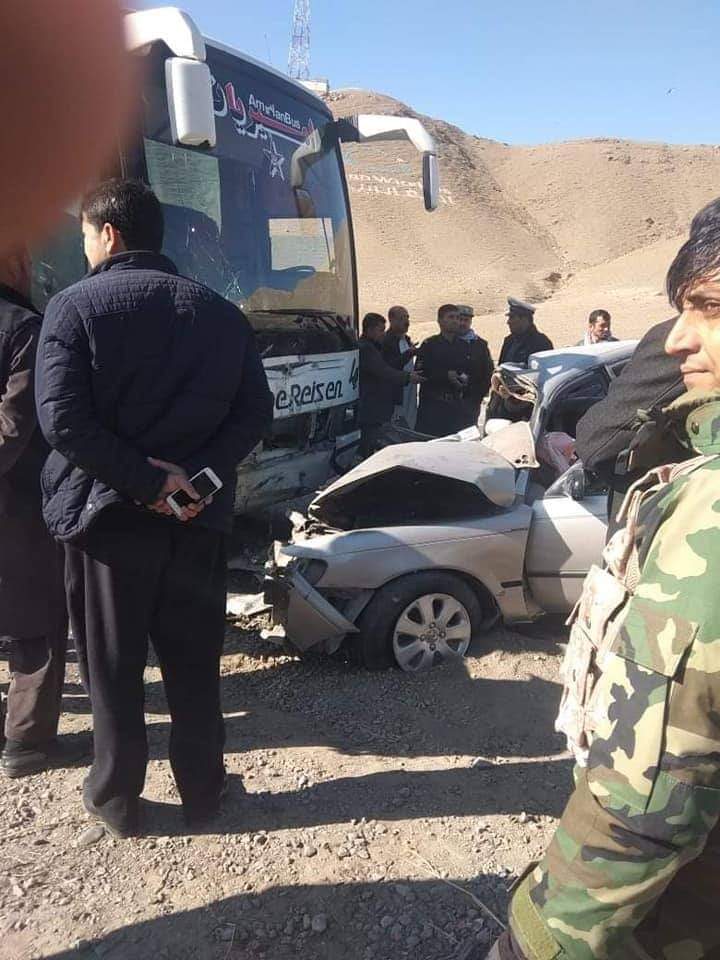 د بغلان د امنيې قومندانۍ ویاند رسنيو سره په خبرو کې ویلي، پېښه هغه مهال رامنځته شوه چې يو ۴۰۴ ډوله مسافر وړونکي بس او کرولا موټر ټکر وکړ.