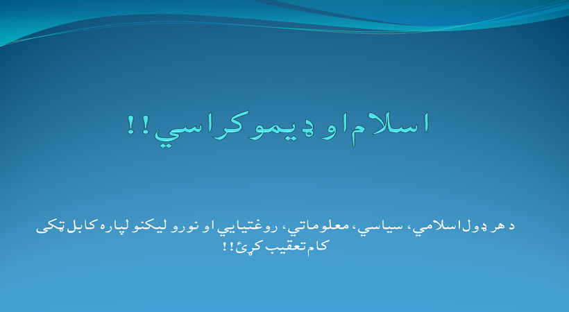 راځئ دلته پر دې څه نه وايو چې ايا اسلام او مروجه ديموکراسي يو ځای سره چلېدلی او سمېدلی شي که نه. ځکه شکر دی موږ ټول په دې ښه پوهېږو او باوري يو چې اسلام په يوازنۍ توګه هغه بشپړ او کامل نظام دی چې د خدای او رسول له مشورې او لارښوونې پرته بل د هيچا ترميم ته اړتيا نه لري. په دې توګه نو له دې حقيقته بايد هيڅوک سترګې وانه ړوي چې د ديموکراسۍ په مزاج برابر اسلام اصلاً اسلام نه دی! ګورئ دې خبرې ته مه حيرانېږئ؛ ځکه چې اوس د کفر، ارتداد، شرک او باطل پالنې بڼه قطعاً هغه نه ده پاتې کومه چې څوارلس سوه کاله ړومبی په مکه او مدينه کې وه.