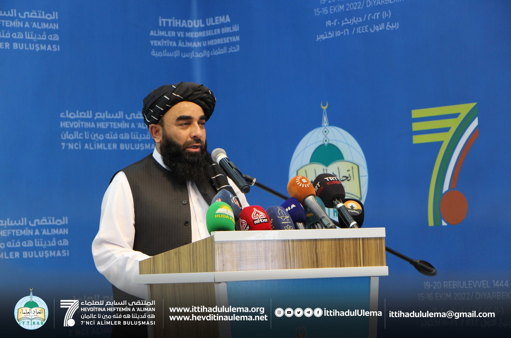 ترکيه کې د اسلامي نړۍ د علماوو غونډه کې، چې نن يې لومړۍ ورځ وه، د افغانستان په استازيتوب پکې د اسلامي امارت وياند «ذبيح الله مجاهد» وينا کړې.