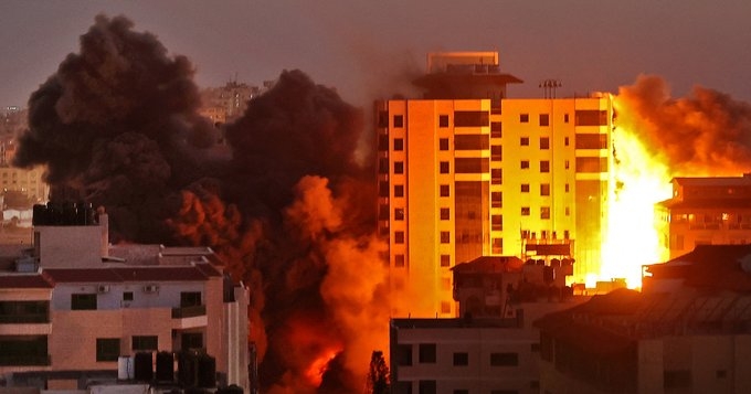 په ورته مهال د فلسطین له خاورې څخه پر اسرائیلو د توغندیو له ویشتلو وروسته د اشغالګرو صهیونستانو هوايي ځواک د غزې په تړانګه هوايي بریدونه پیل کړي دي.