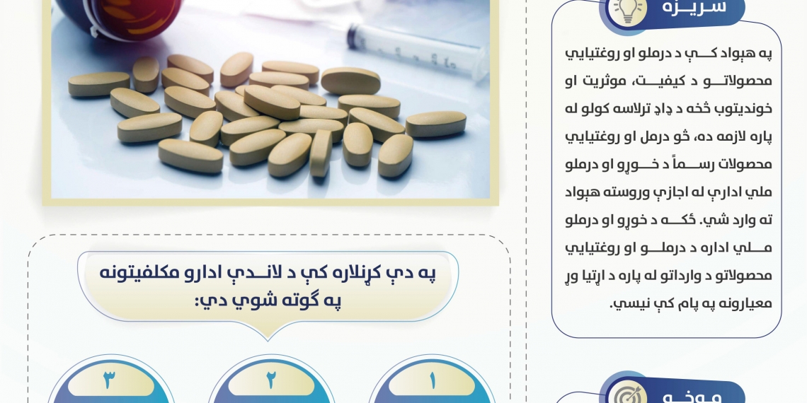 اقتصادي معاونيت وايي، چې د دغه کړنلارې د جوړيدو اساسي موخه د رسمي وارداتو ترسره کېدل، خوندي او باکيفيته درملو ته د هېوادوالو د پراخ لاسرسي له پاره د ميکانيزم رامنځته کول دي.