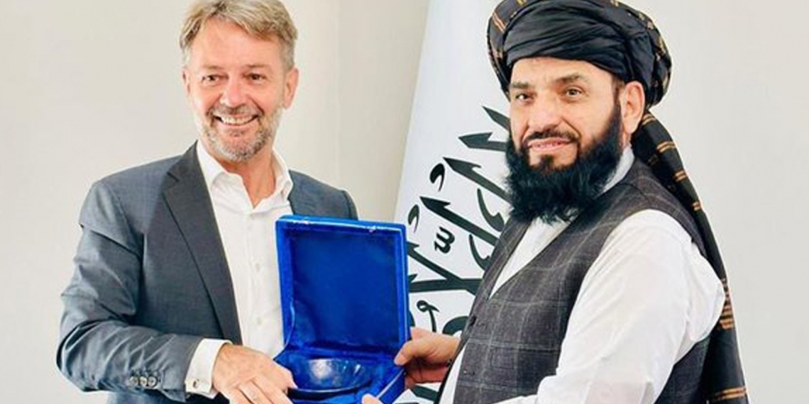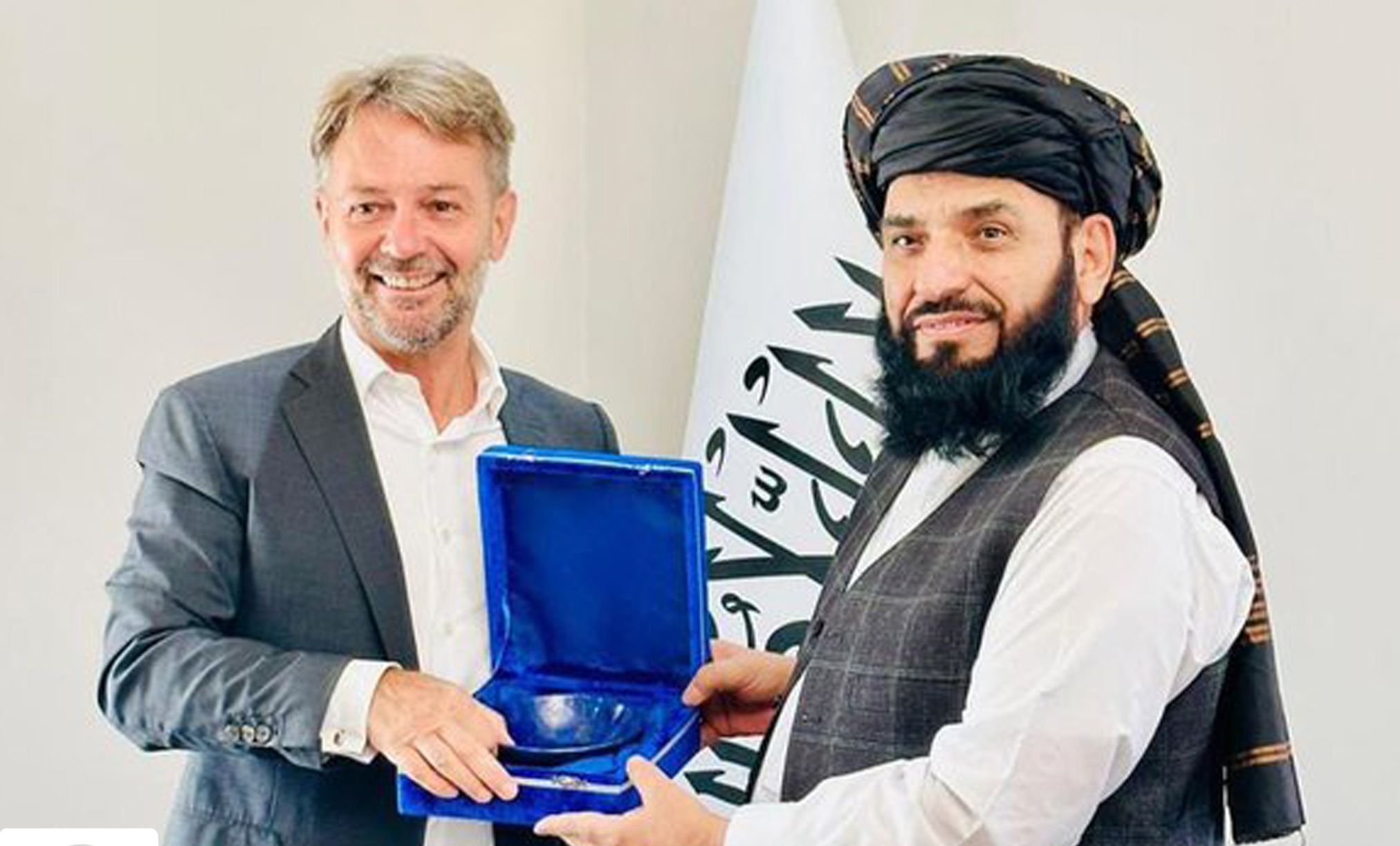 په قطر کې د افغانستان د سرپرست حکومت سفیر، سهیل شاهین، د فرانسې له شارژدافیر، جین میرین شو، سره کتلي دي.